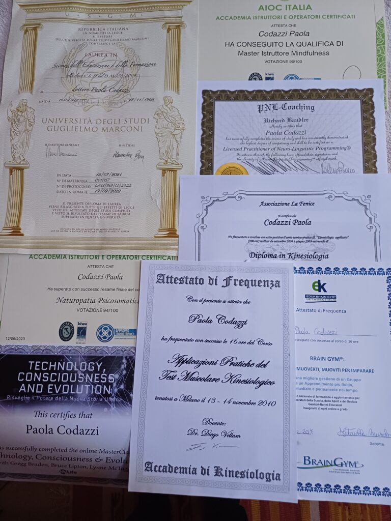 Ho inoltre una Laurea in Scienze dell’Educazione e della formazione. Soprattutto ho buone attitudini di ascolto e ritengo che quella sia la migliore strada per accogliere ed accompagnare gli altri verso un miglioramento della propria situazione.